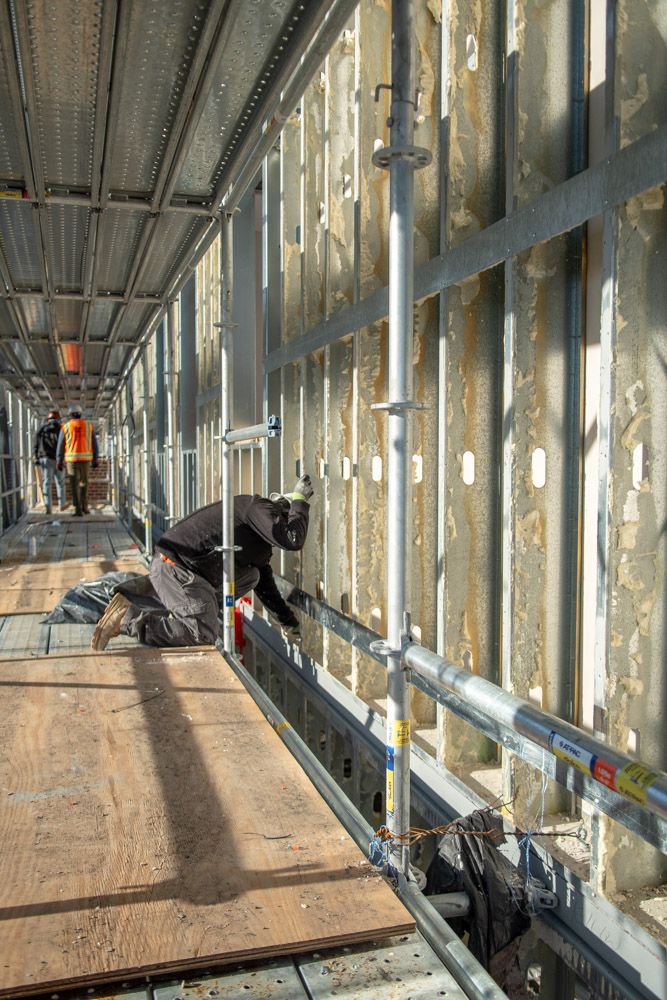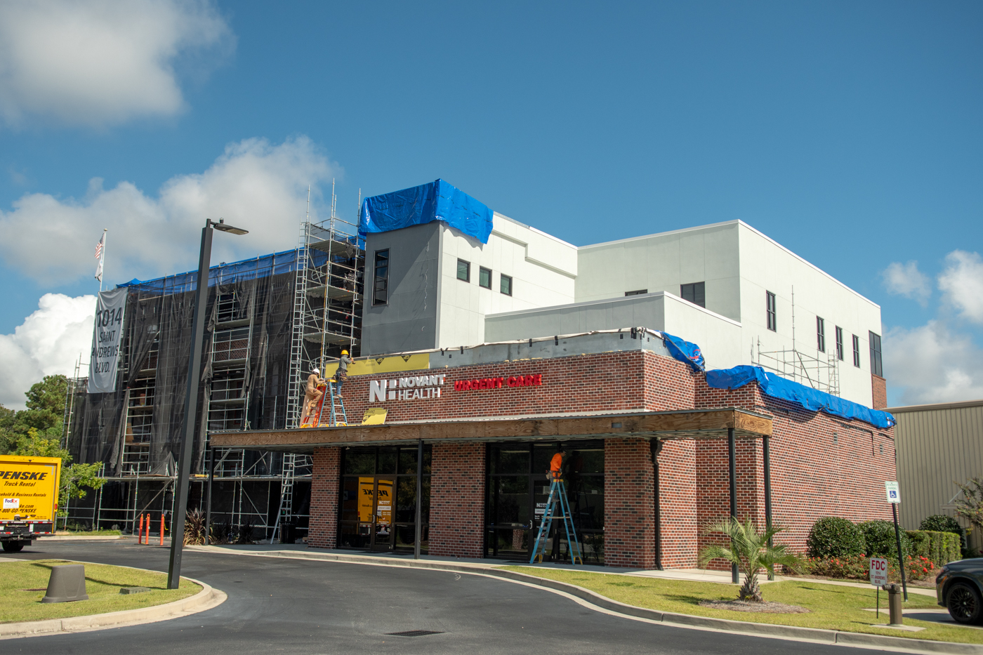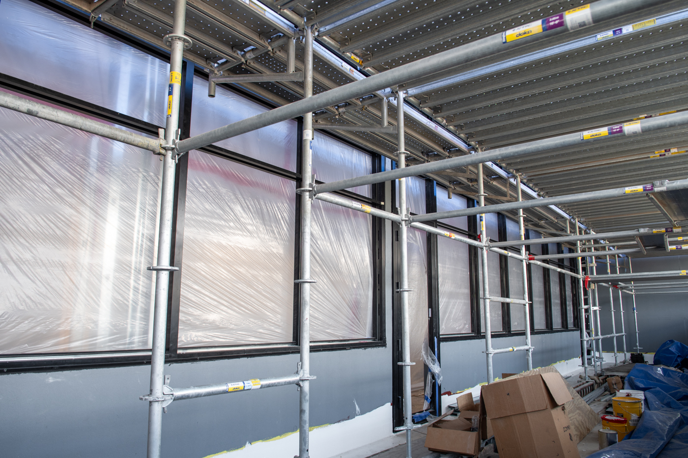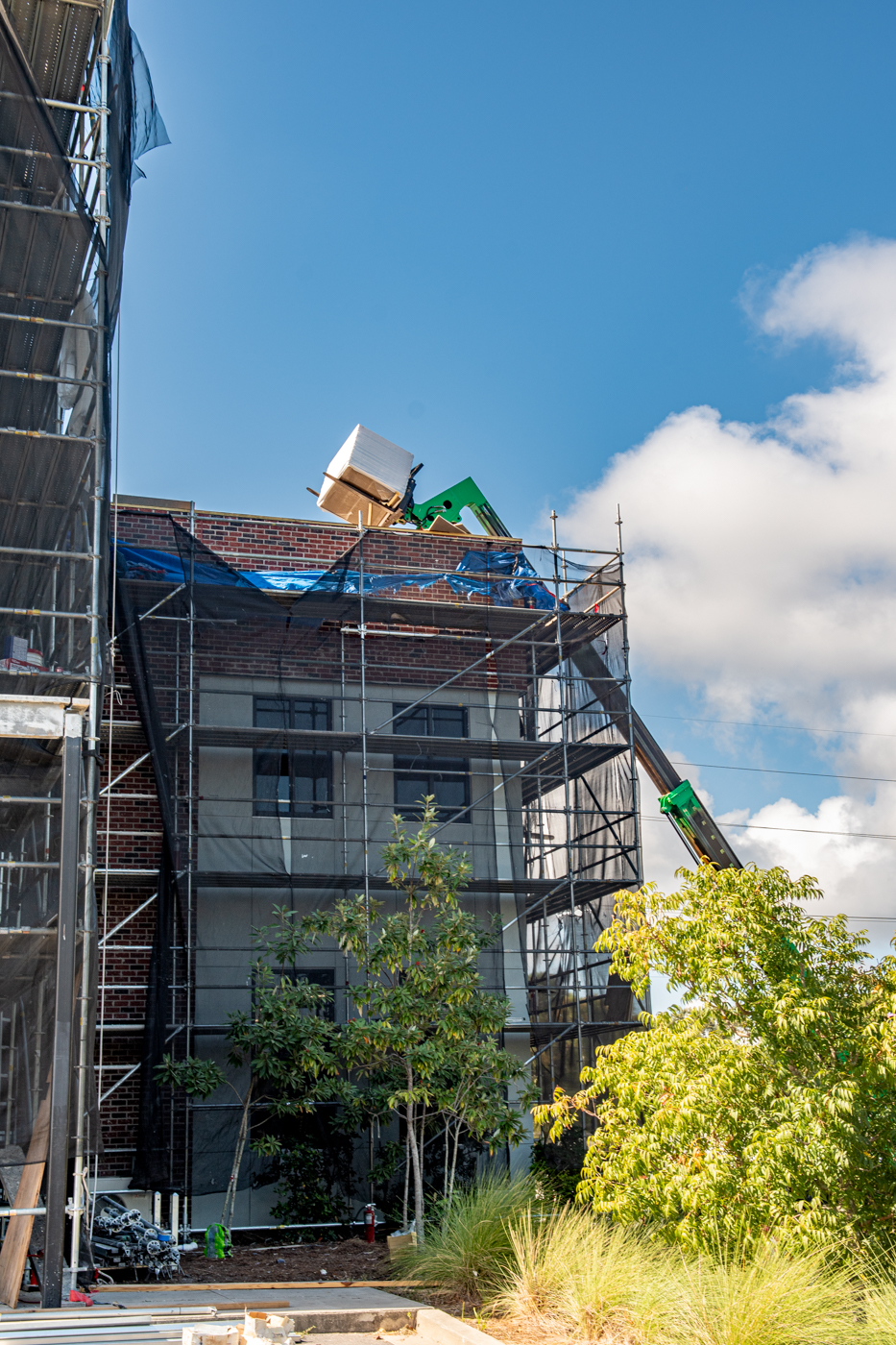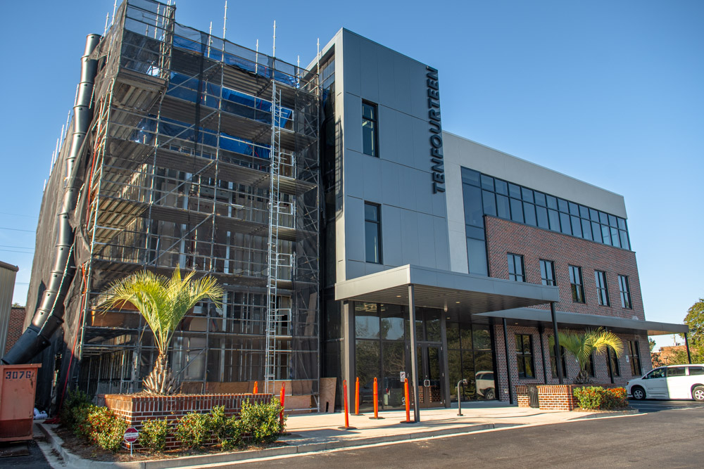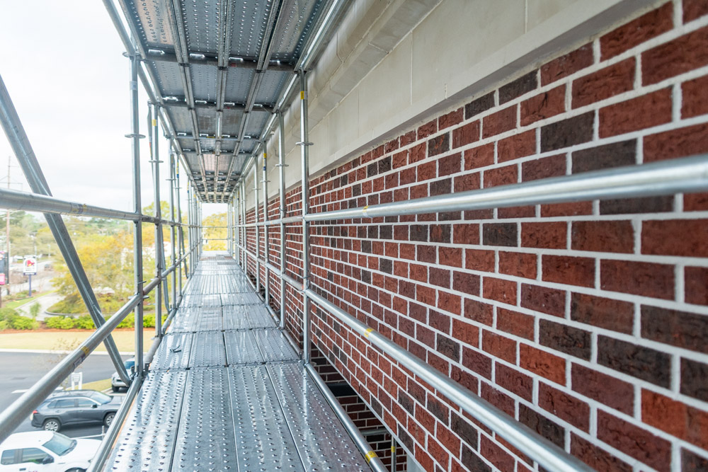 The scope of work includes removal and replacement of stucco, and brick veneer, removal and replacement of metal facade, removal and replacement of storefront doors and curtainwall windows. Remove and reinstall steel framed canopy roofs. Replacing all rough opening CFS framing. Installing missing HSS. Bring all elevations up to fire-code. Remove and replace TPO roof. Re-install existing deck pavers.