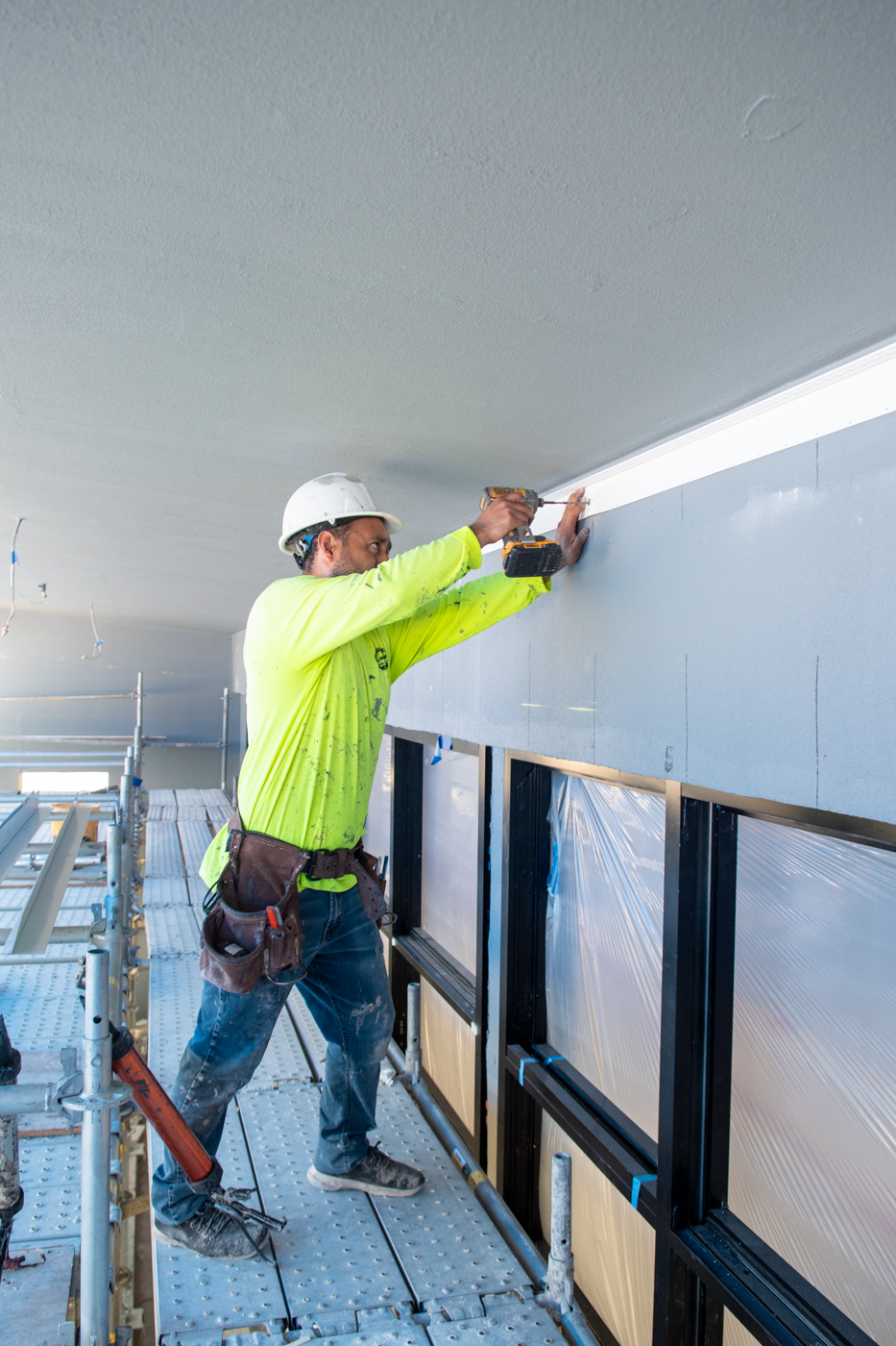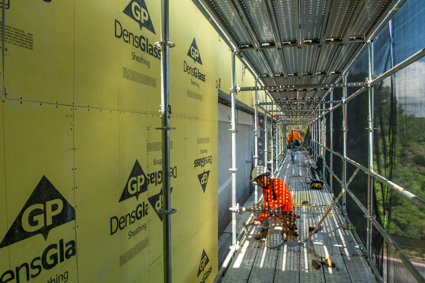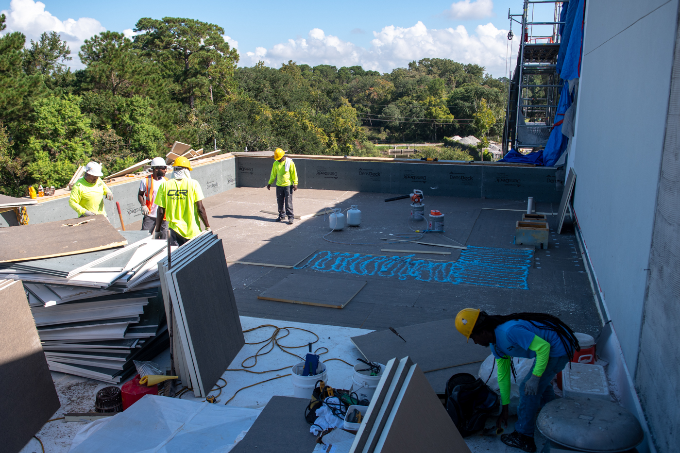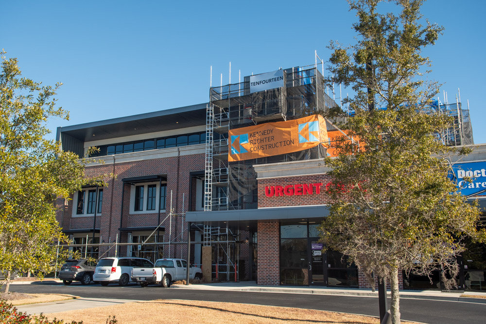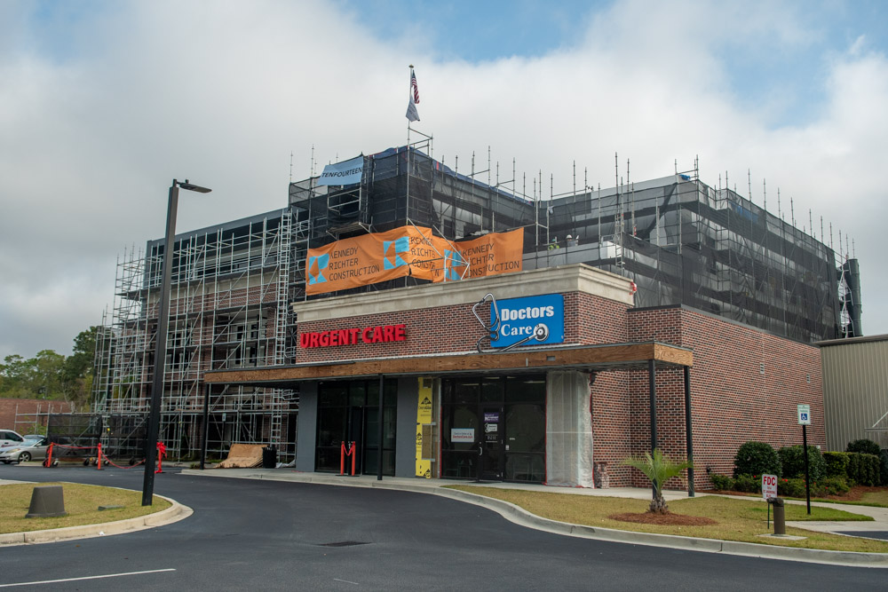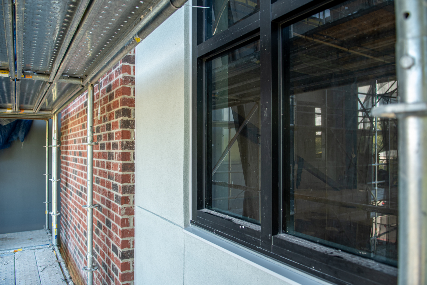 The scope of work includes removal and replacement of stucco, and brick veneer, removal and replacement of metal facade, removal and replacement of storefront doors and curtainwall windows. Remove and reinstall steel framed canopy roofs. Replacing all rough opening CFS framing. Installing missing HSS. Bring all elevations up to fire-code. Remove and replace TPO roof. Re-install existing deck pavers.