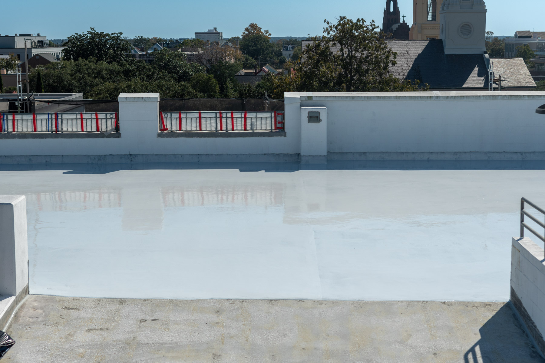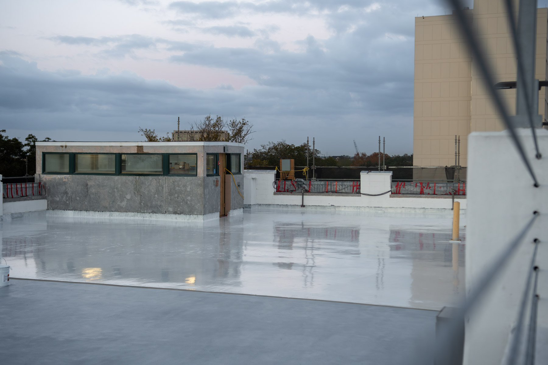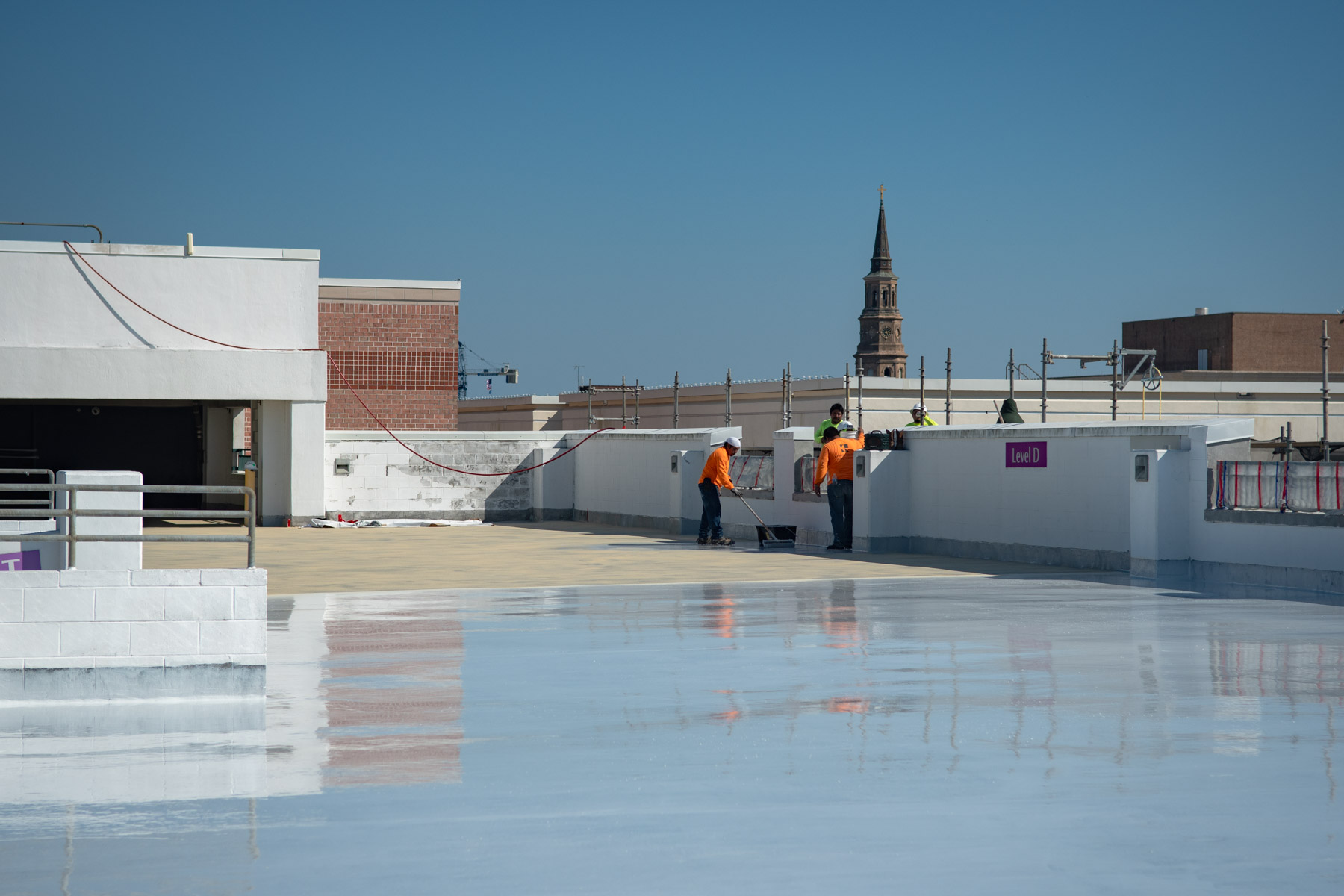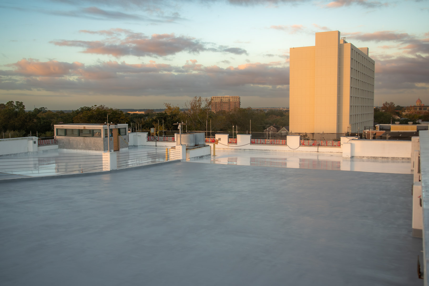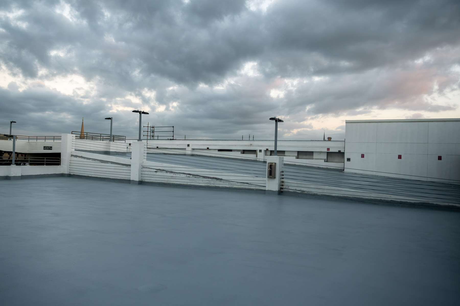 Interior Repairs at the Parking Garage included a removal and replacement of existing traffic coatings on the top floor and ramp with the Sikalastic 720/745 AL Traffic System and application of Sikagard 740 W concrete sealer at the garage entrance ramp and first level. All existing vertical and horizontal sealants were removed and replaced throughout the parking garage, vertical expansion joints were replaced with Emseal Seismic Colorseal and horizontal expansion joints replaced with the Emseal Thermaflex System.