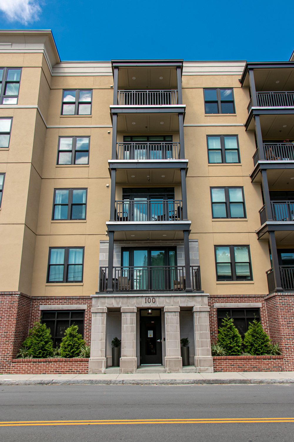 The scope of work included removal and replacement of stucco, brick, fiber cement siding and trim, cast stone, and windows/doors. The project included extensive sheathing and framing repairs.