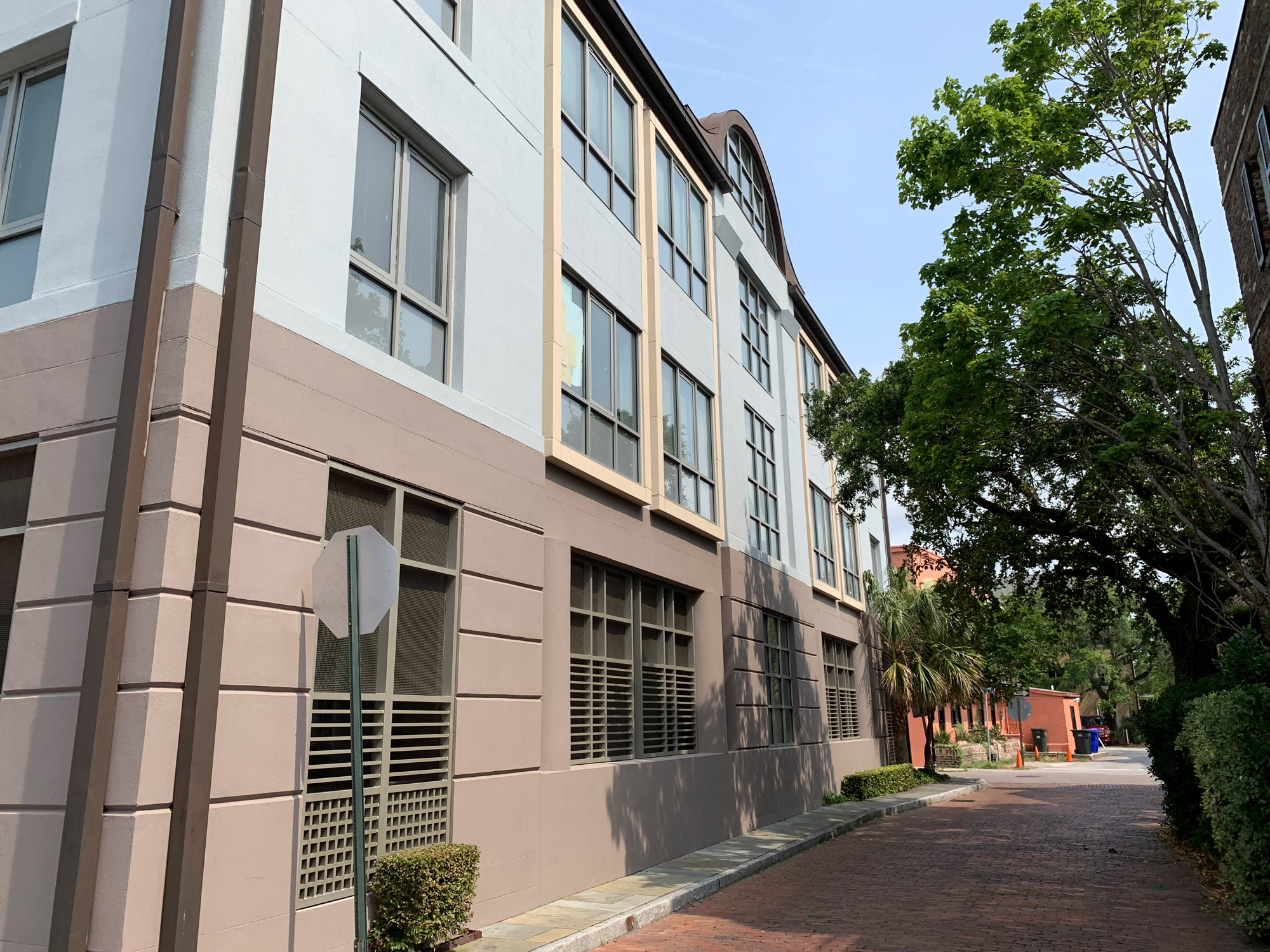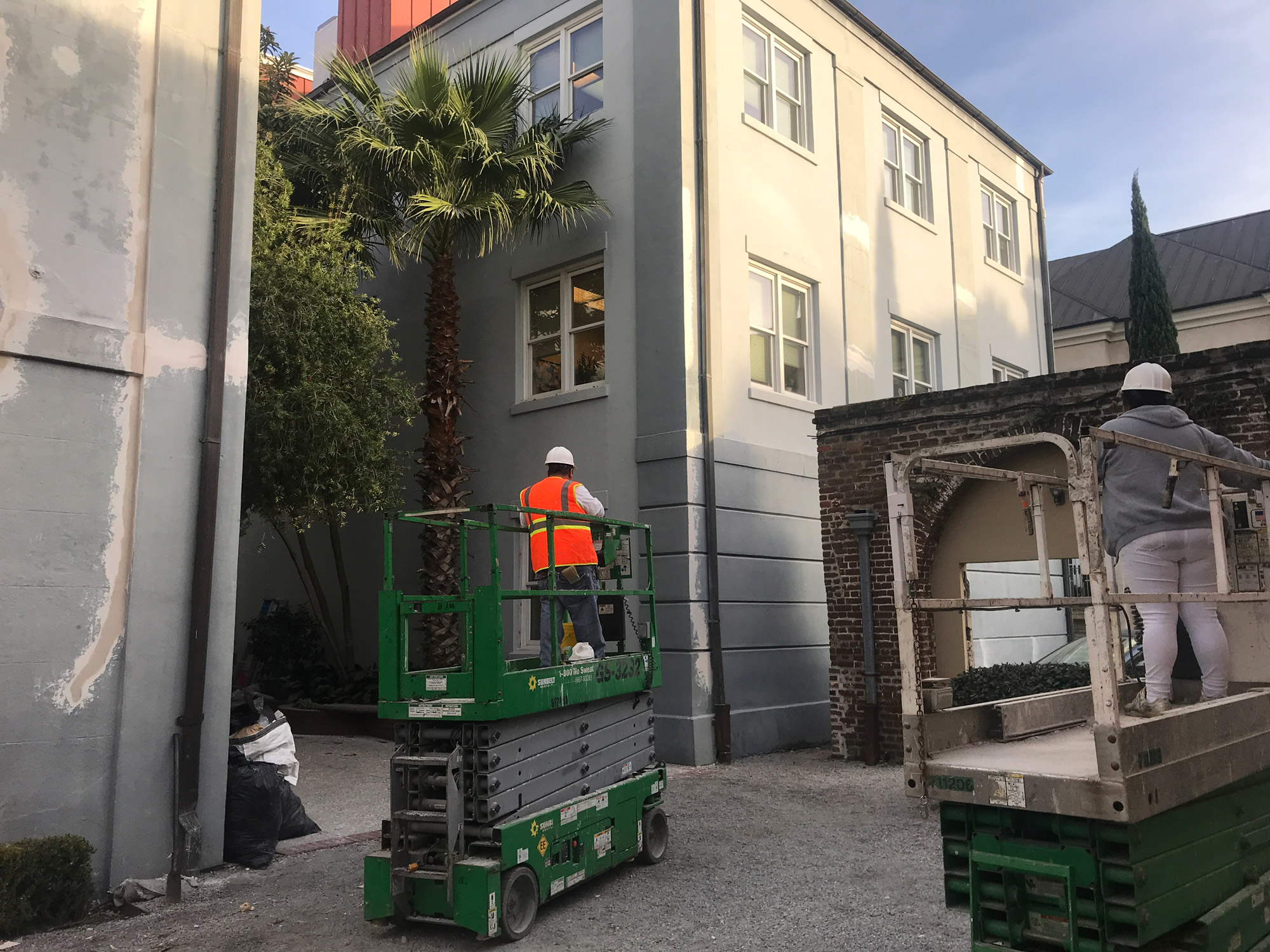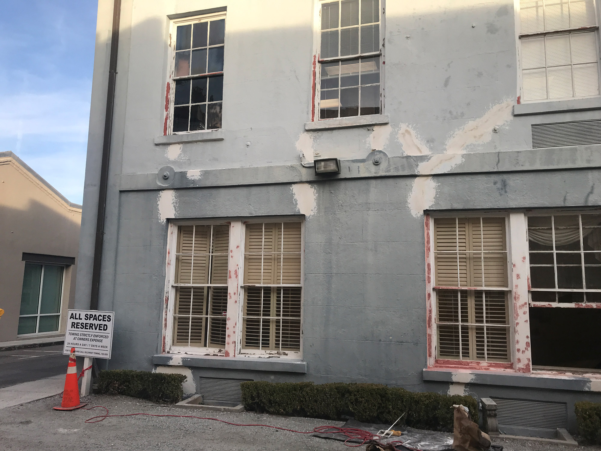 The scope of work included historic restoration of stucco, repointing of the multi wythe brick, and restoration of the historic windows and doors for a high-profile law firm in downtown Charleston.