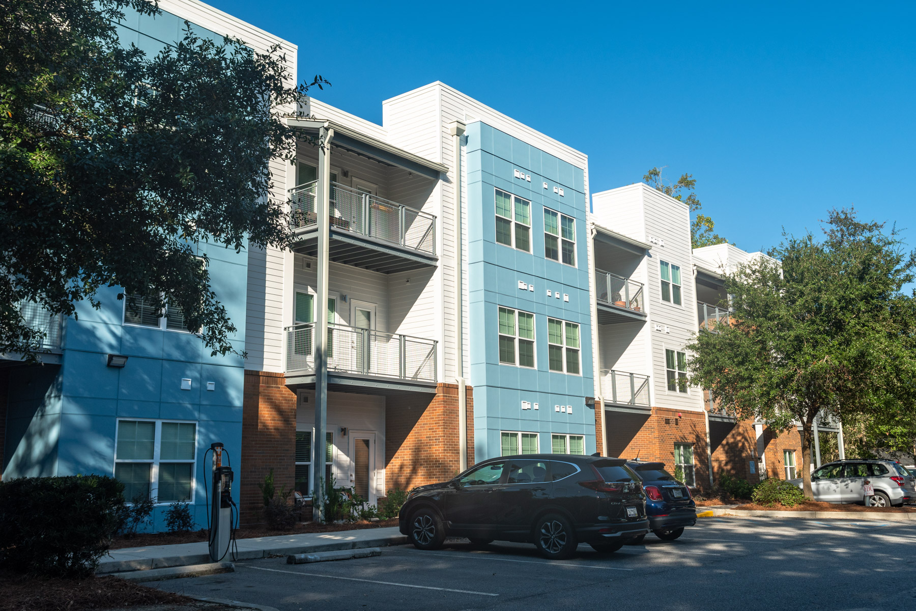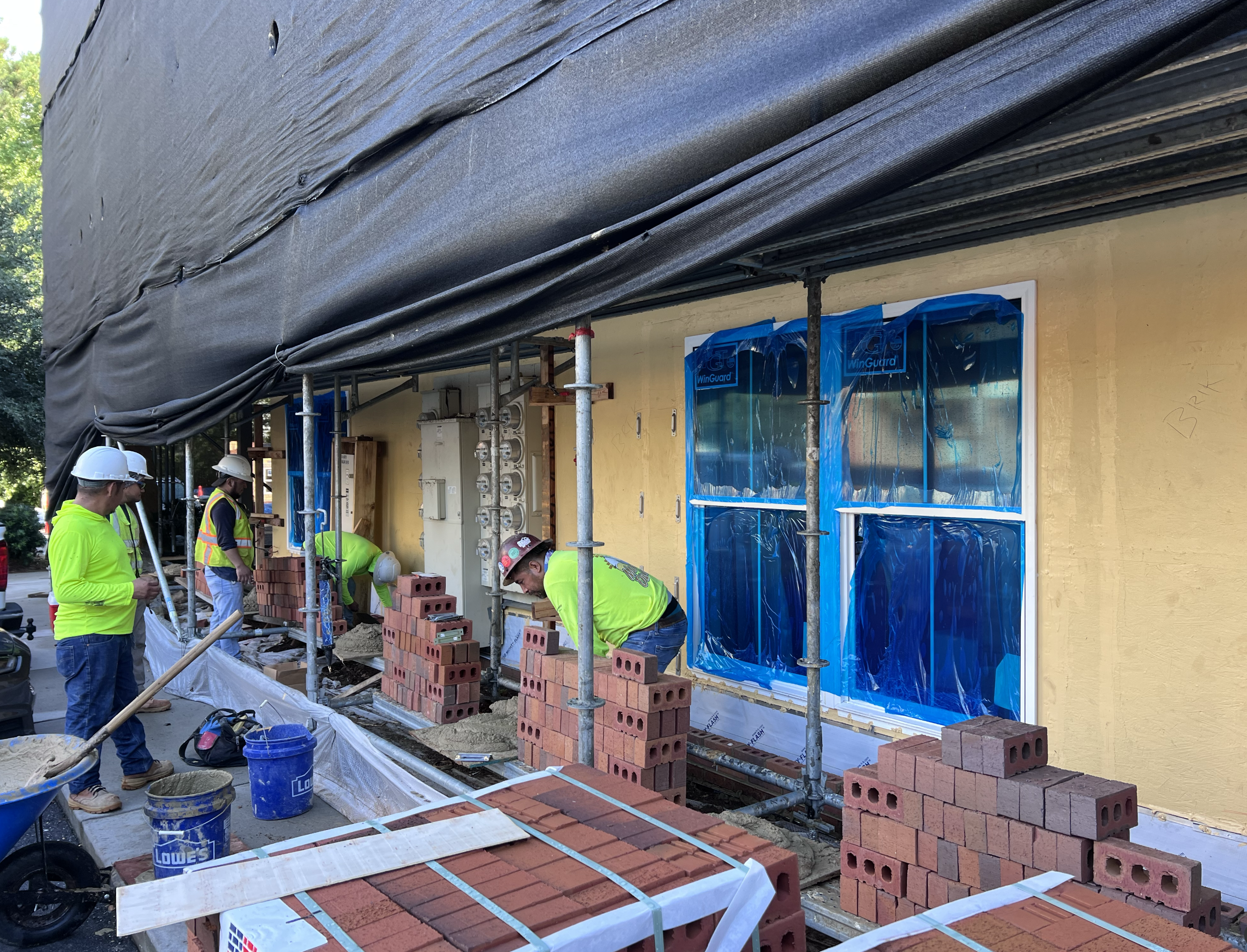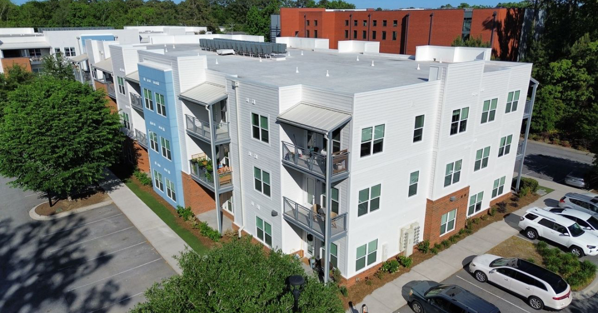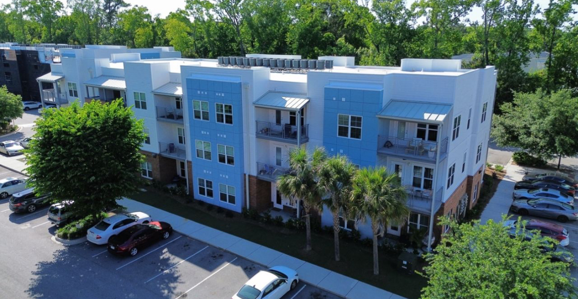 The scope of work includes replacement of limited roofing assemblies, deck repairs, exterior windows, stucco claddings, brick veneer, fiber cement siding and fiber cement panel, waterproofing and structural repairs. The project is located on Charleston, SC. It is constructed of wood framing. The projected construction schedule was approximately 16 months.