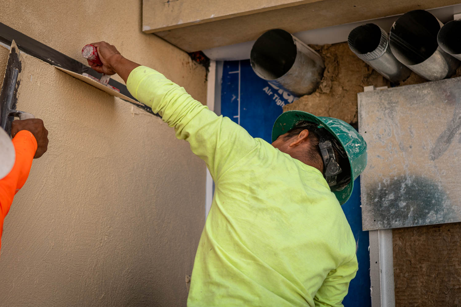 The scope of work includes fully enclosing the rear breezeway structure of varies apartment buildings due to water intrusion and life safety concerns, brick veneer, fiber cement siding, trim, exterior rails, deck framing, concrete, waterproofing, roofing, and all interior finishes.