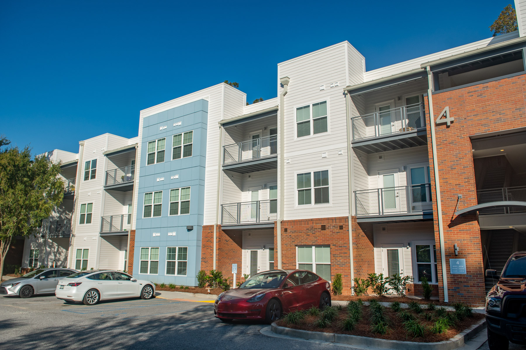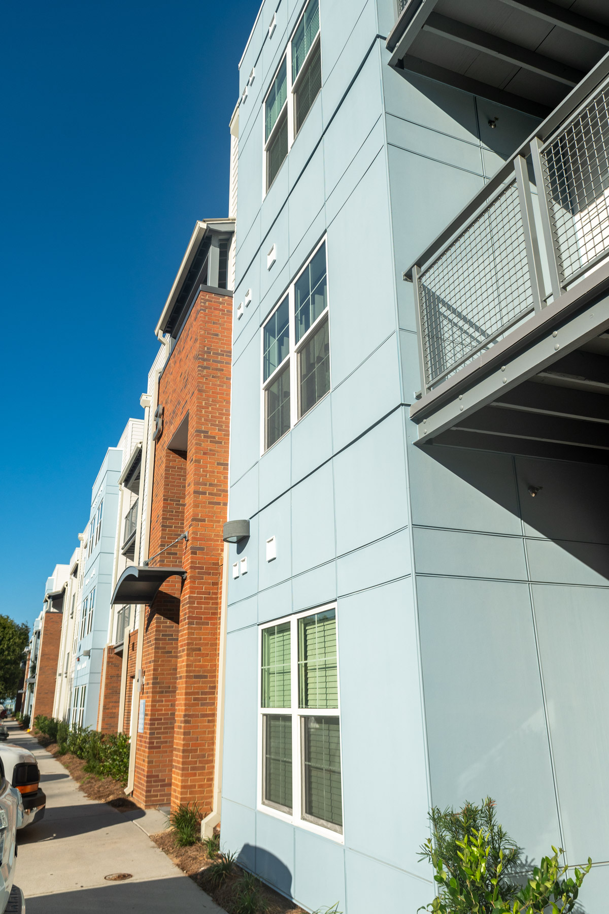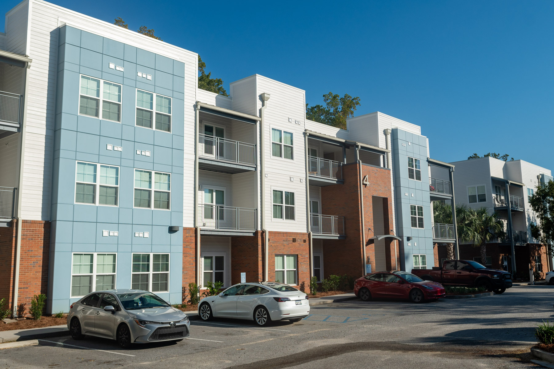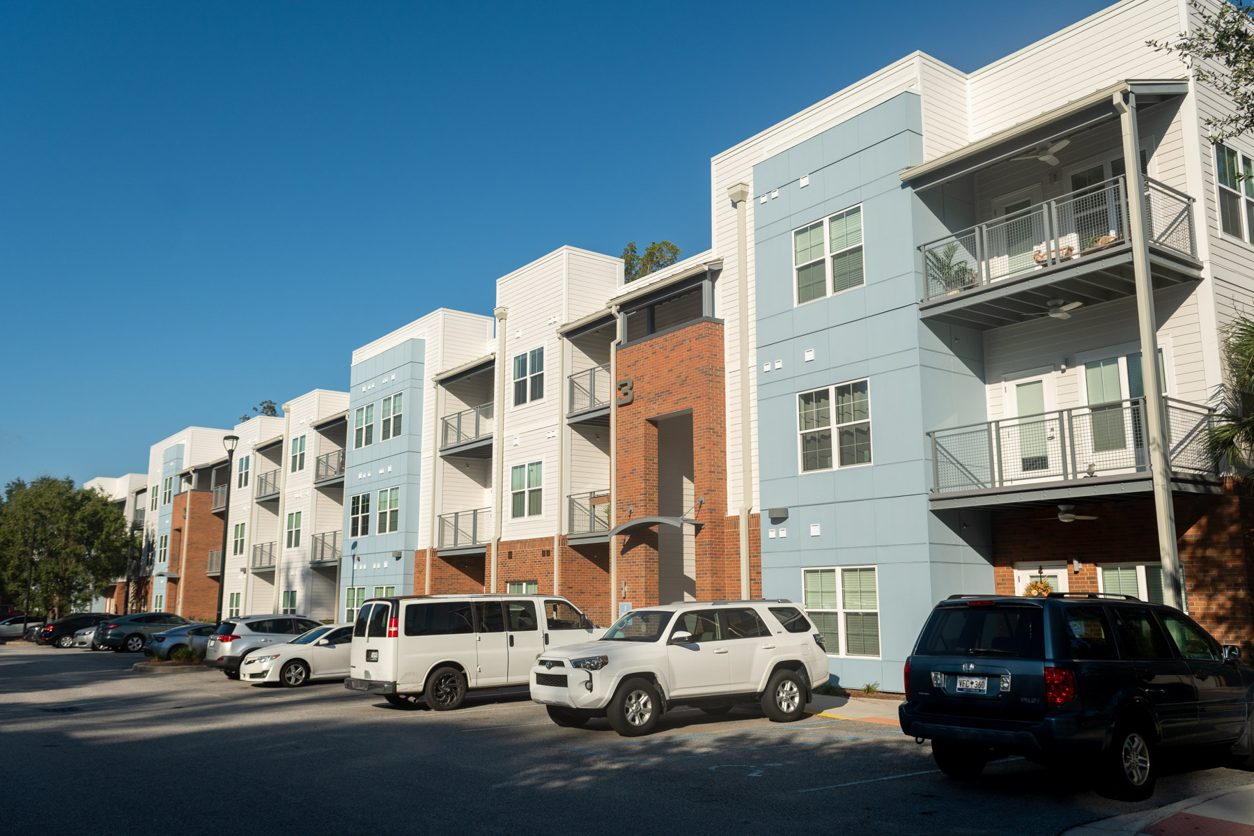 The scope of work includes replacement of limited roofing assemblies, deck repairs, exterior windows, stucco claddings, brick veneer, fiber cement siding and fiber cement panel, waterproofing and structural repairs. The project is located on Charleston, SC. It is constructed of wood framing. The projected construction schedule was approximately 16 months.