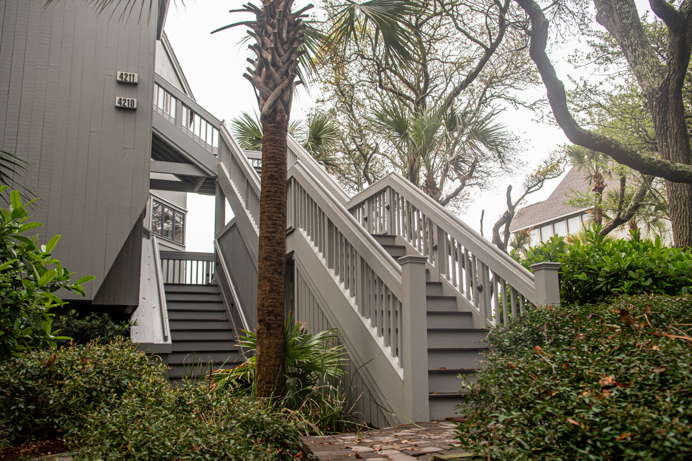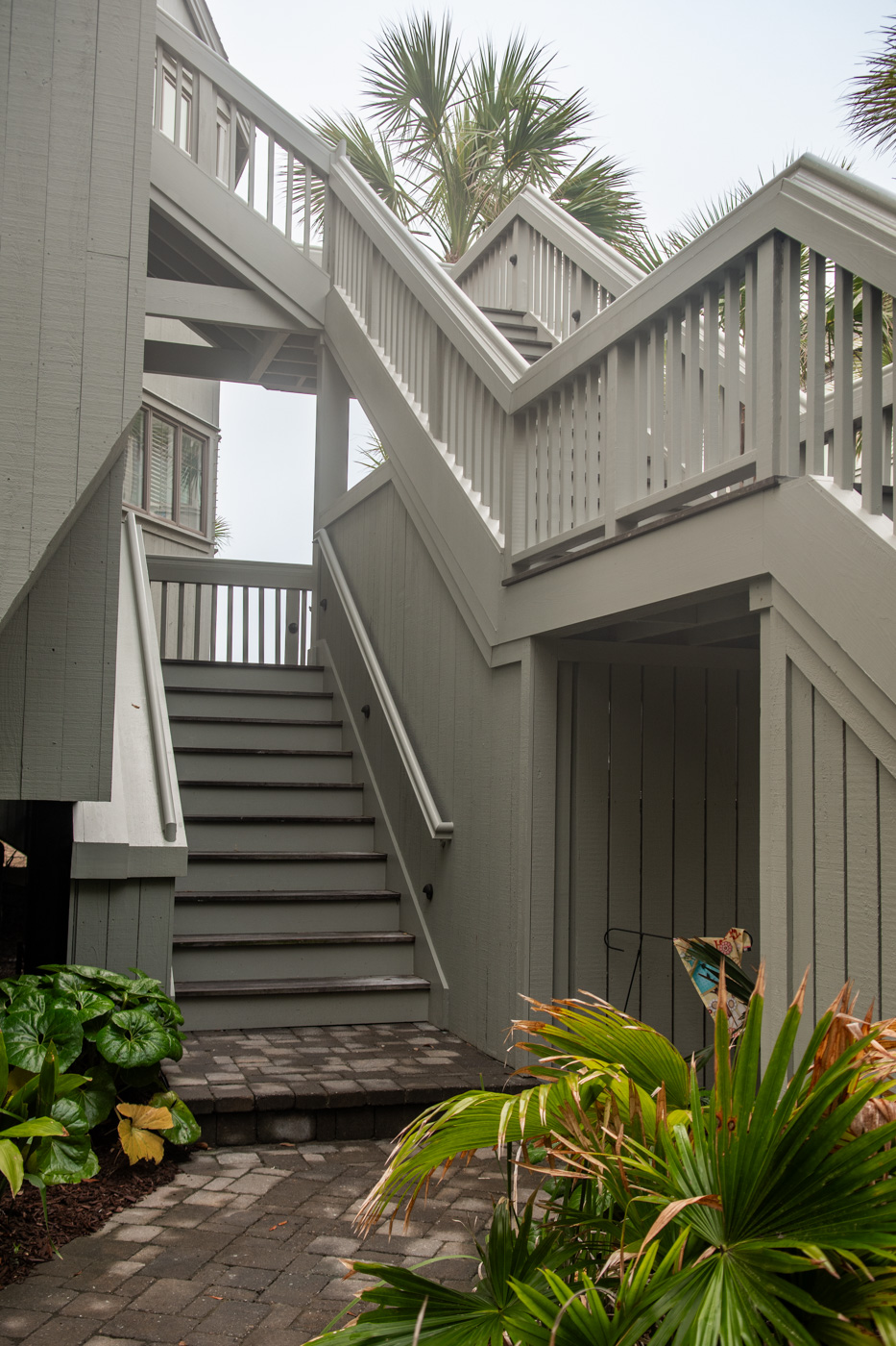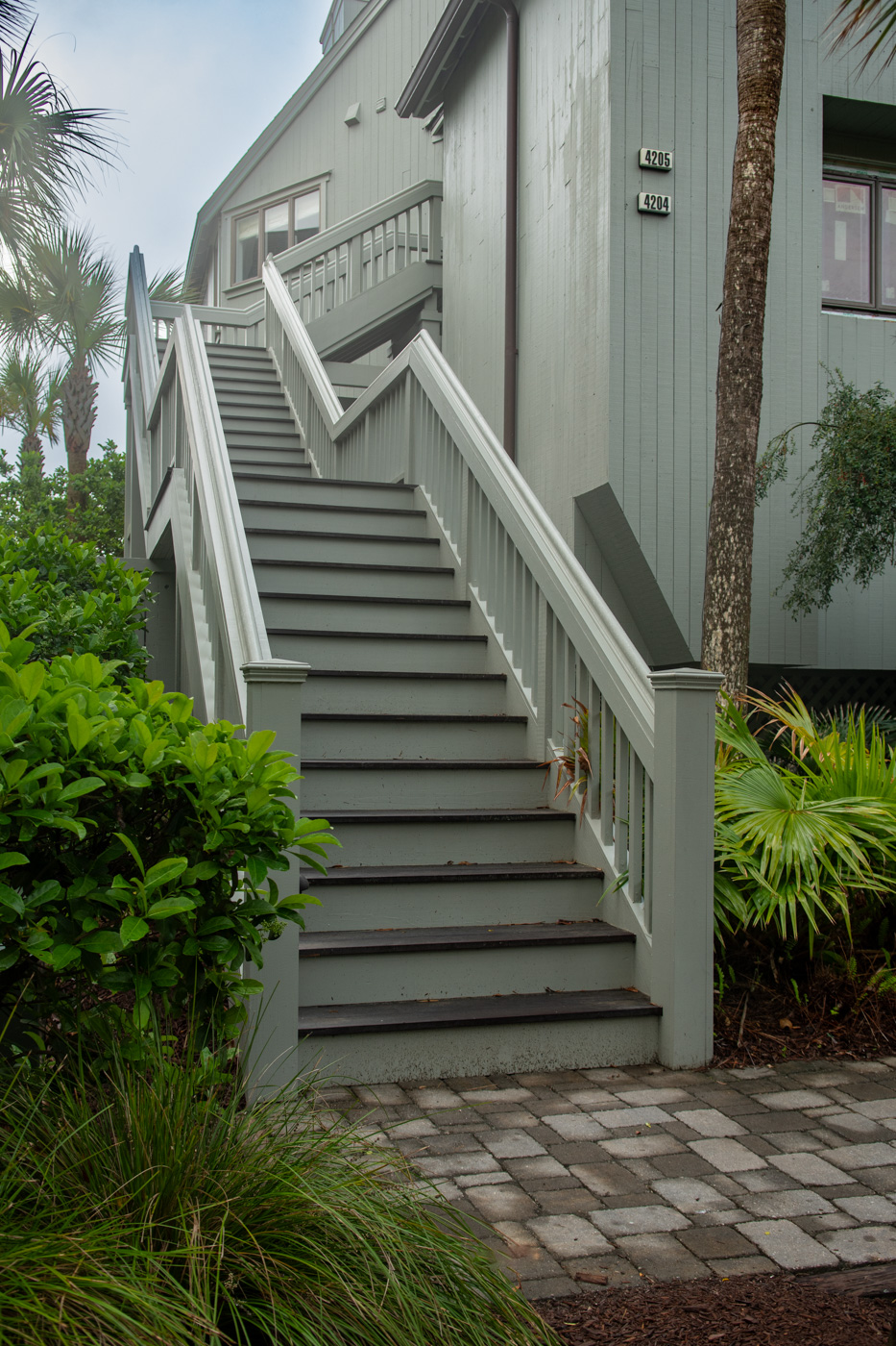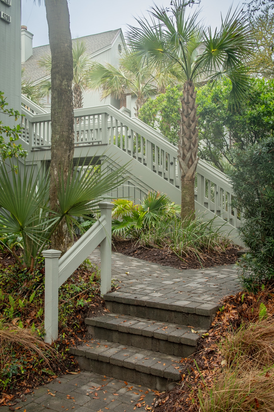 Stair replacement with new concrete foundations and footings, retaining walls, paver walkways, new gutters and downspouts with associated drainage.