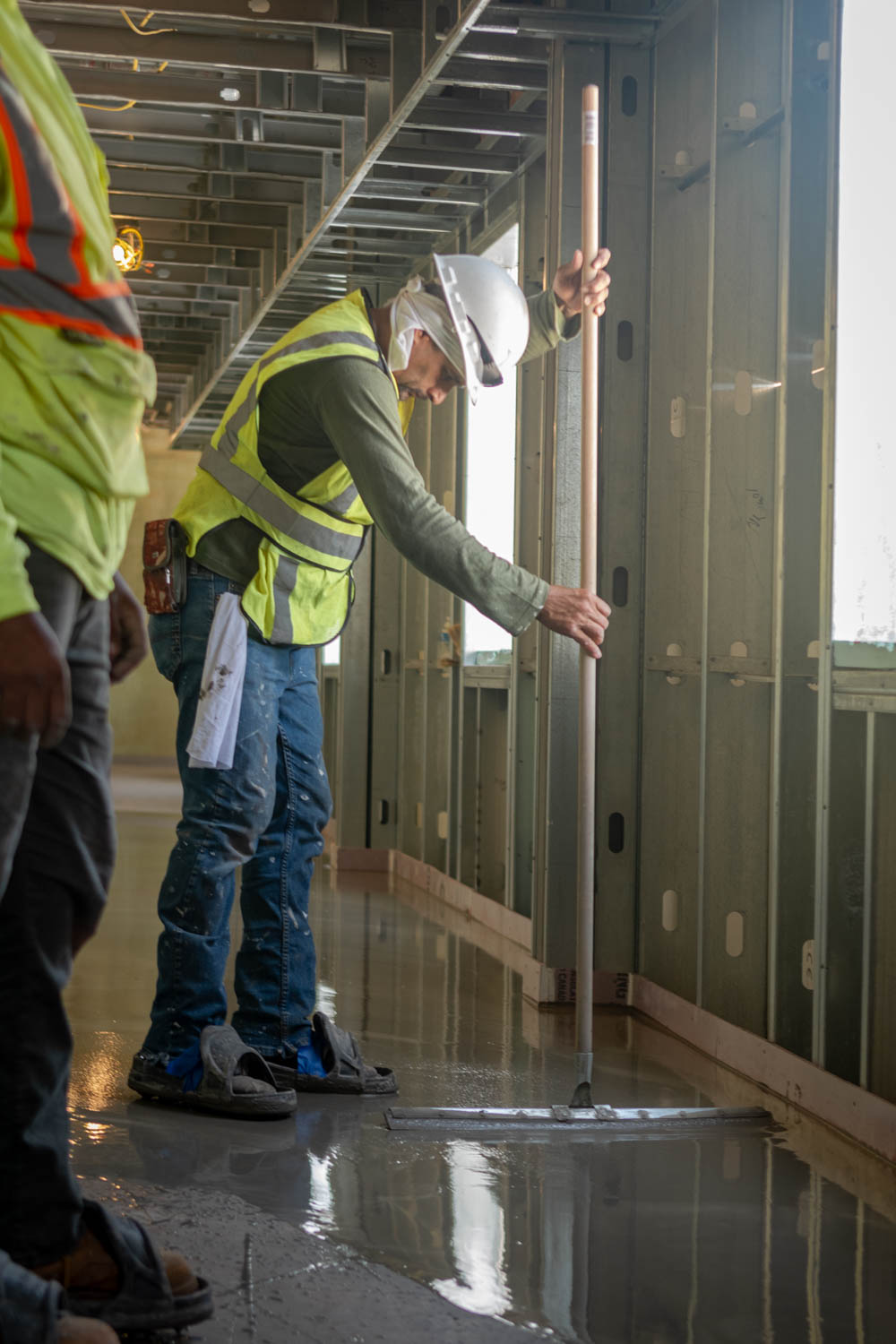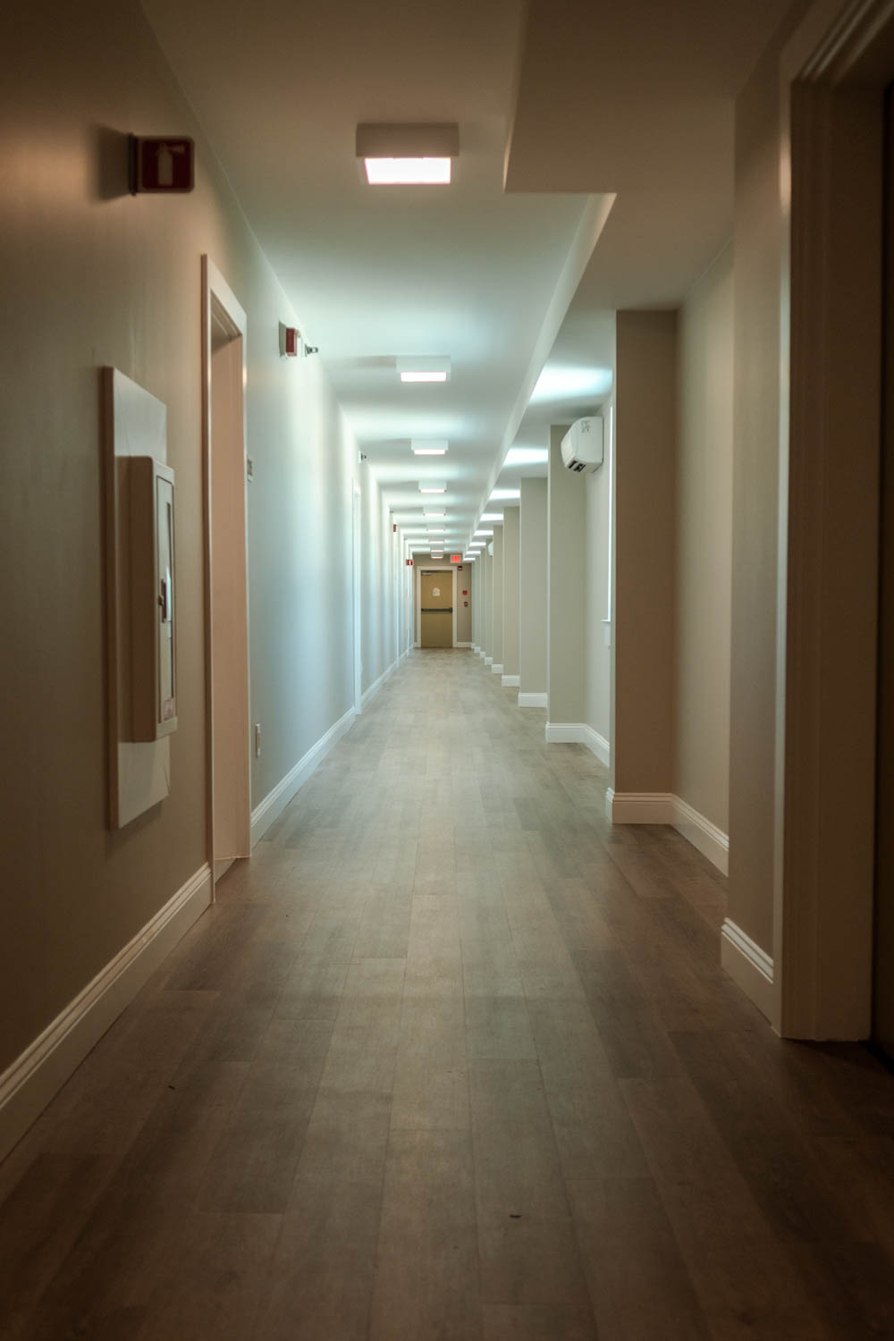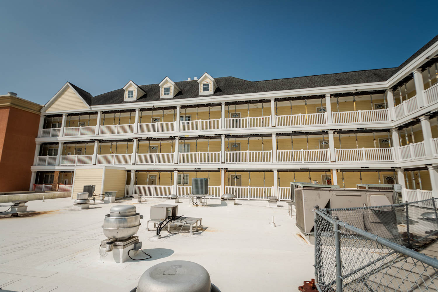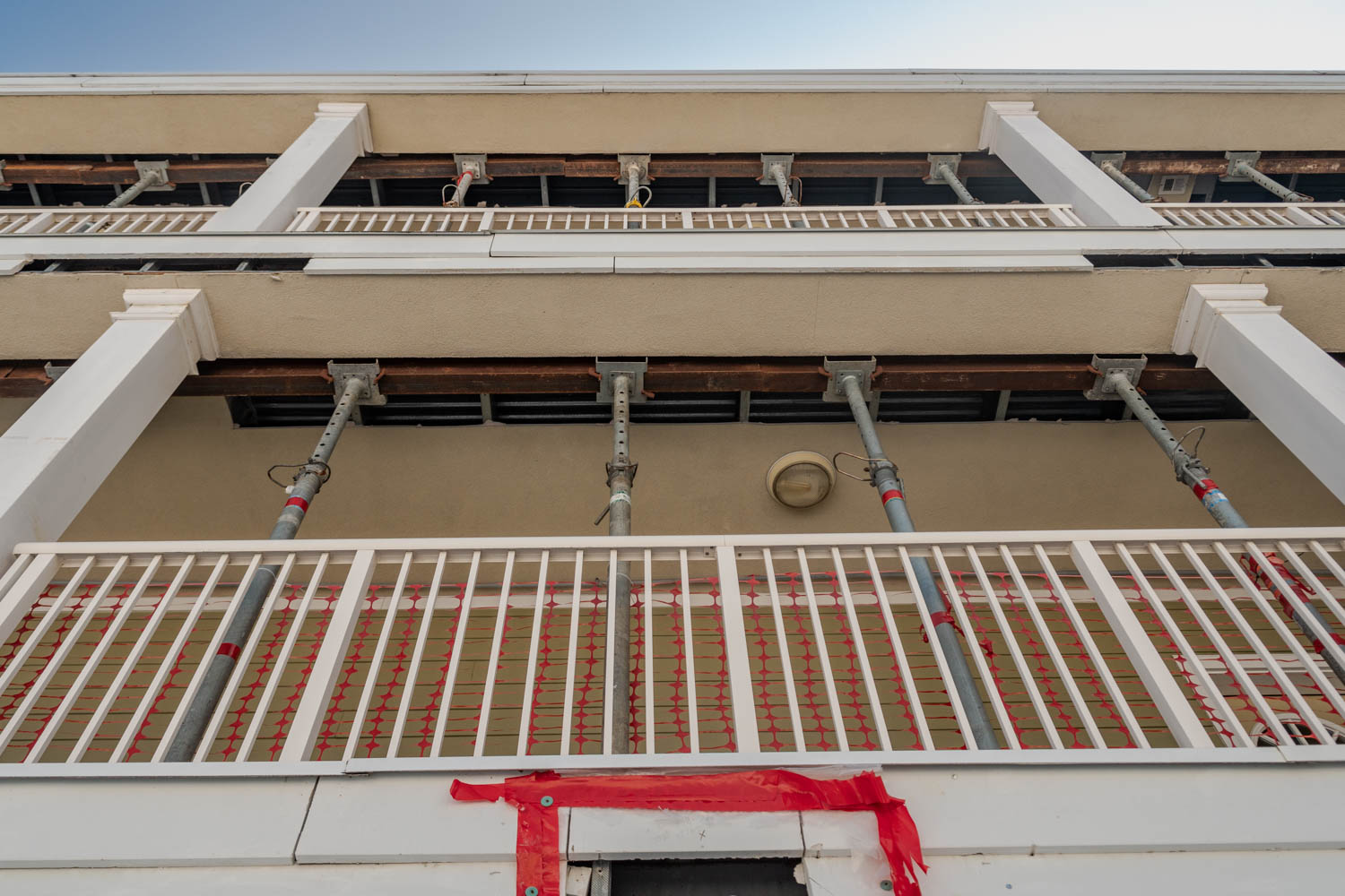 The scope of work includes fully enclosing the rear breezeway structure of varies apartment buildings due to water intrusion and life safety concerns, brick veneer, fiber cement siding, trim, exterior rails, deck framing, concrete, waterproofing, roofing, and all interior finishes.