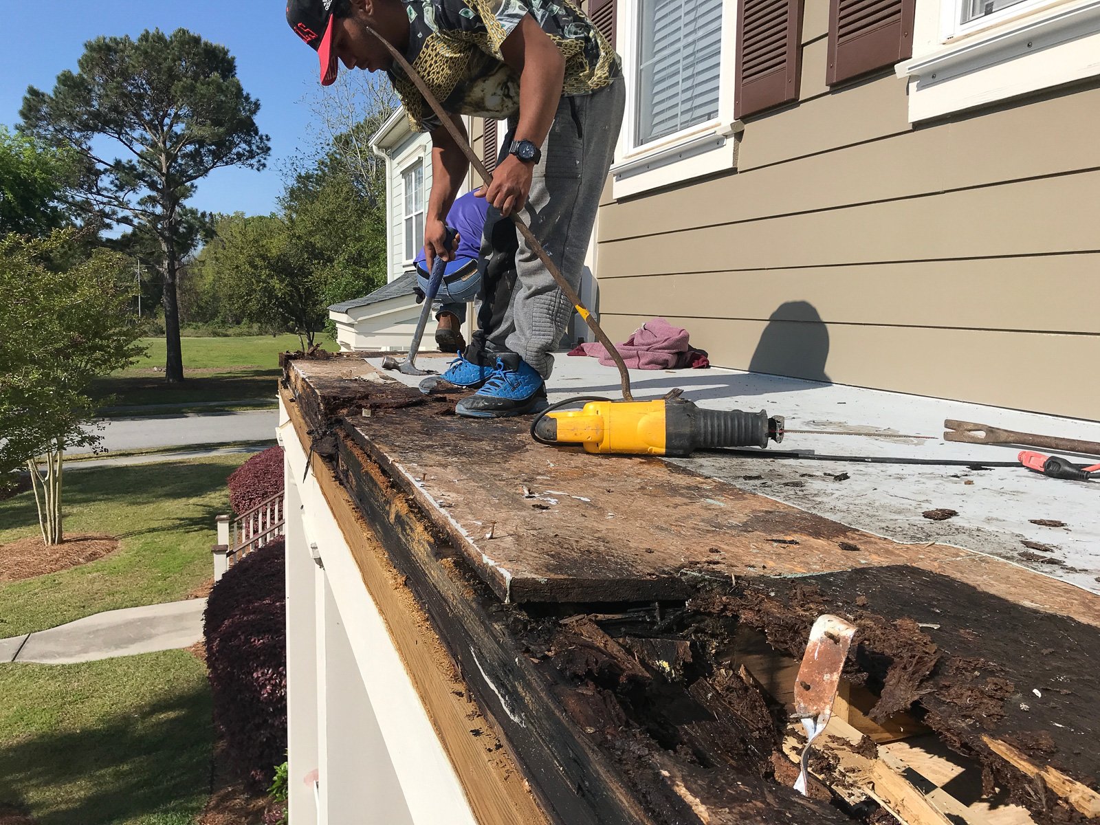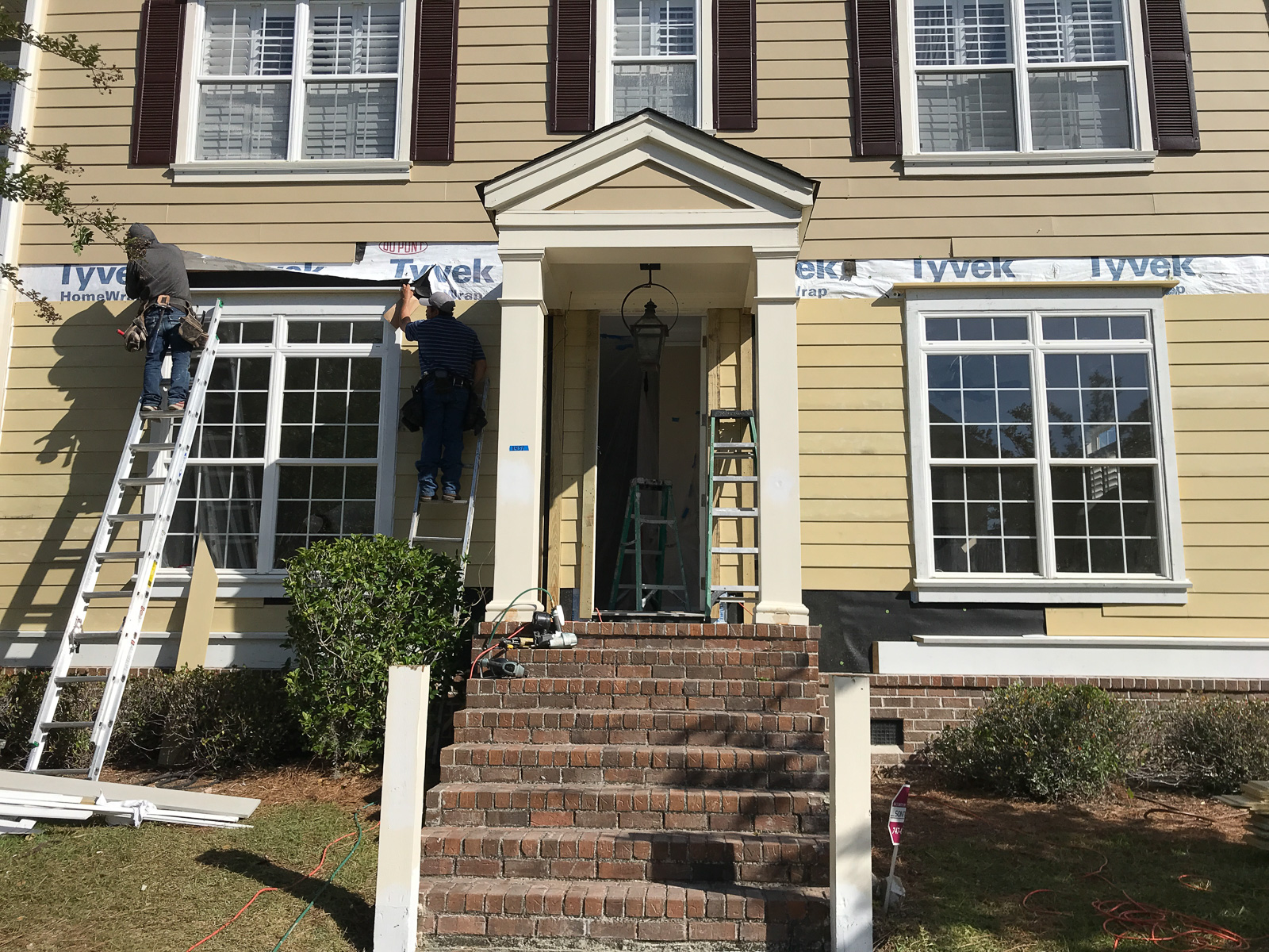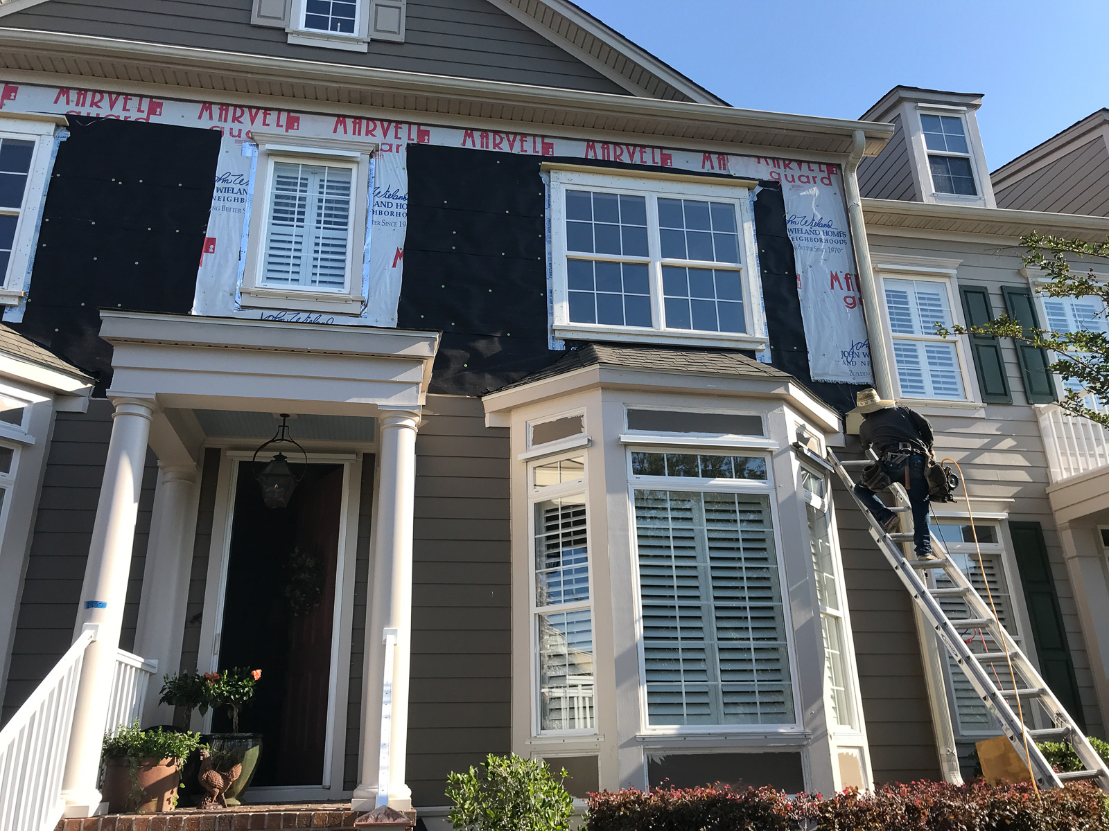 The scope of work included removal and replacement of brick, fiber cement siding and trim, and roofing. The project included sheathing and framing repairs. The units were fully occupied during the time of the repairs. The project is located in Mount Pleasant, SC. The board President is Ted Kuczynski 703.341.7930. The gross sq. footage is approximately 900,000 sq. ft as there are 300+ townhouses. It is constructed of wood framing. The projected construction schedule was approximately 8 months.